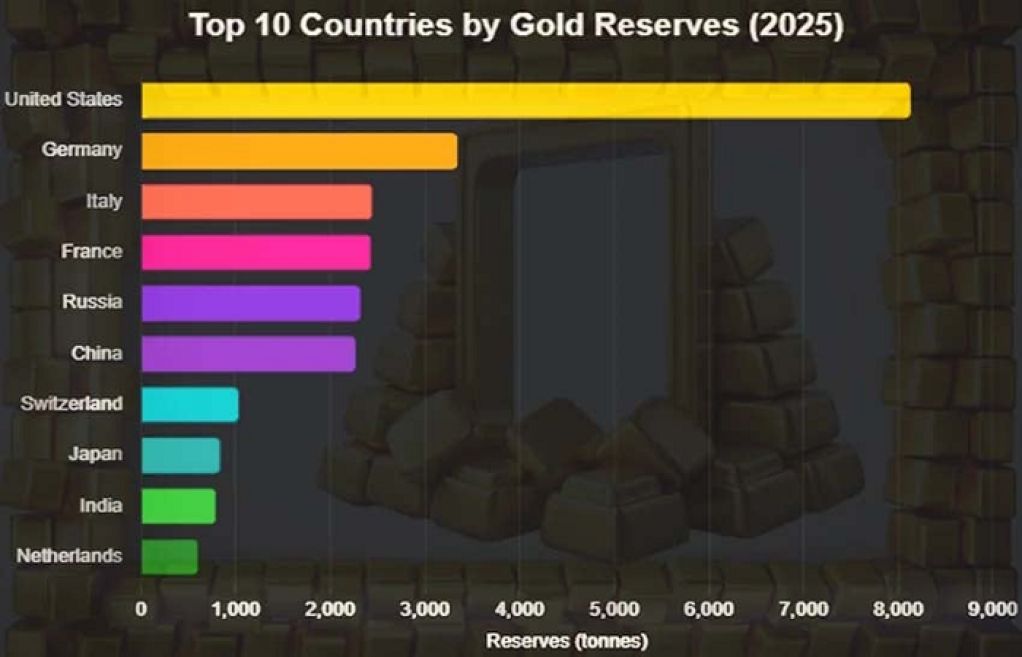 امریکا کئی دہائیوں سے اس فہرست میں سرفہرست ہے۔ بیشتر ذخائر فورٹ ناکس اور نیویارک فیڈ میں محفوظ ہیں۔ حالیہ برسوں میں کوئی بڑی خرید و فروخت نہیں ہوئی، صرف ذخائر کو مستحکم رکھا گیا ہے۔