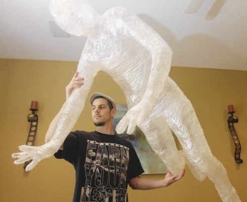 اس منفرد آرٹ کو تیار کرنے کیلئے فن کار مختلف اشیا ء کو سانچوں کے طور پر استعمال کر تے ہوئے ان کے گردشفاف اسکاچ ٹیپ کو لپیٹ دیتاہے۔ ٹیپ کی کئی تہوں کے بعد جب ایک واضح شکل سامنے آ جاتی ہے تو یہ ماہر آرٹسٹ انتہائی صفائی سے ٹیپ کو کاٹ کرسانچے سے علیحدہ کر لیتا ہے ۔اس فن کار نے اب تک اسکاچ ٹیپ سے سینکڑوں مجسمے تیار کئے ہیں جو ایک نظر میں جیتے جاگتے معلوم ہوتے ہیں۔