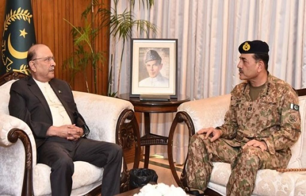 صدر مملکت آصف علی زرداری سے فیلڈ مارشل سید عاصم منیر نے ملاقات کی، اس دوران صدر مملکت اور فیلڈ مارشل کی داخلی وخارجی سکیورٹی صورتحال پرگفتگو ہوئی۔ ایوان صدر سے جاری اعلامیےکے مطابق فیلڈ مارشل سید عاصم منیرکی صدر مملکت سے ملاقات ایوان صدر میں ہوئی، ملاقات میں فیلڈ مارشل نے صدرمملکت کو ملک کی مجموعی داخلی وخارجی سکیورٹی صورتحال پر بریفنگ دی۔ فیلڈ مارشل نے افغان طالبان حکومت کی جارحانہ اور اشتعال انگیز کارروائیوں اور اس سے پیدا حالیہ سکیورٹی صورتحال سے آگاہ کیا۔