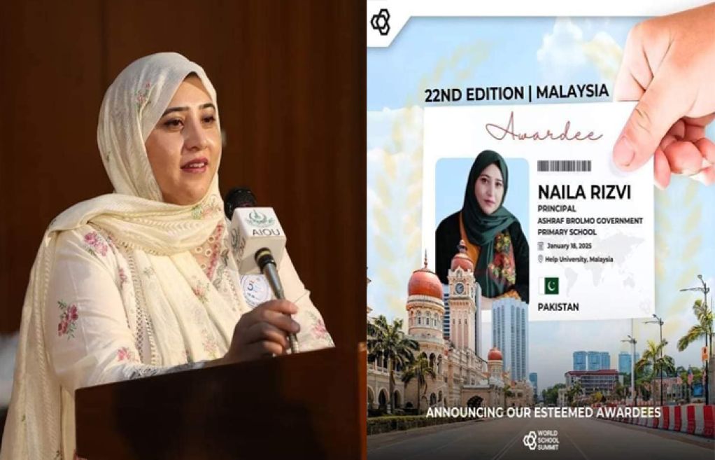 سکردو سے تعلق رکھنے والی ایک پرائمری سکول کی پرنسپل نائلہ رضوی کو ملائیشیا میں عالمی ایوارڈ کیلئے منتخب کر لیا گیا۔