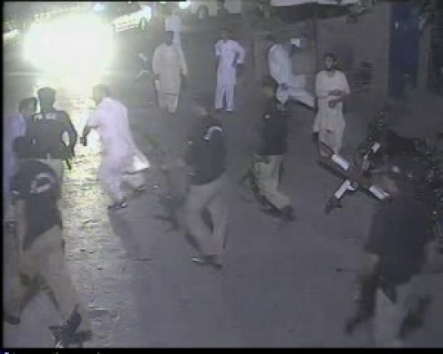 پشاور کے علاقے باڑا روڈ پر پولیس نے دو مبینہ خودکش حملہ آوروں کو ڈرامائی انداز میں گھیرے میں لے کر گرفتار کرلیا۔