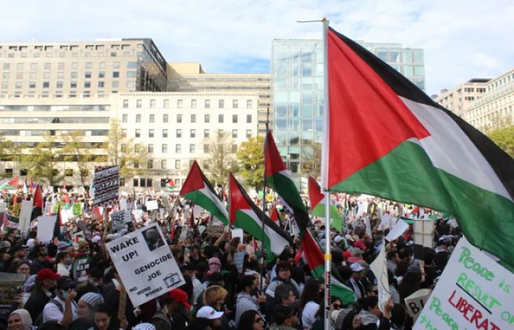 غیر ملکی میڈیا کے مطابق واشنگٹن میں بھی ہزاروں افراد کا فلسطینیوں سے اظہار یکجہتی کرتے ہوئے احتجاج کیا گیا۔